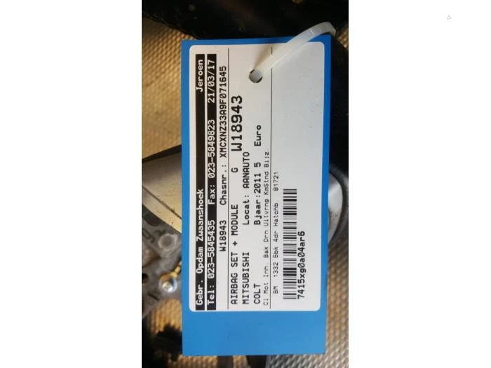 Bent u op zoek naar een betrouwbaar en kwalitatief Airbag Set+Module van het merk Mitsubishi? Dan hoeft u niet verder te zoeken. Wij beschikken over een ruime selectie Airbags die geschikt zijn voor diverse automerken en -modellen. Kunt u het juiste onderdeel niet vinden of twijfelt u of het past bij uw auto? Neem dan gerust contact met ons op via onderstaande contactgegevens. Wij helpen u graag verder.