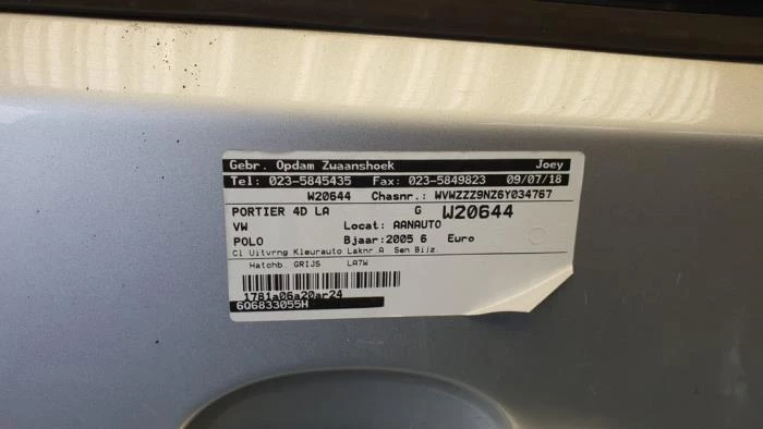 | Laknummer voertuig | la7w |